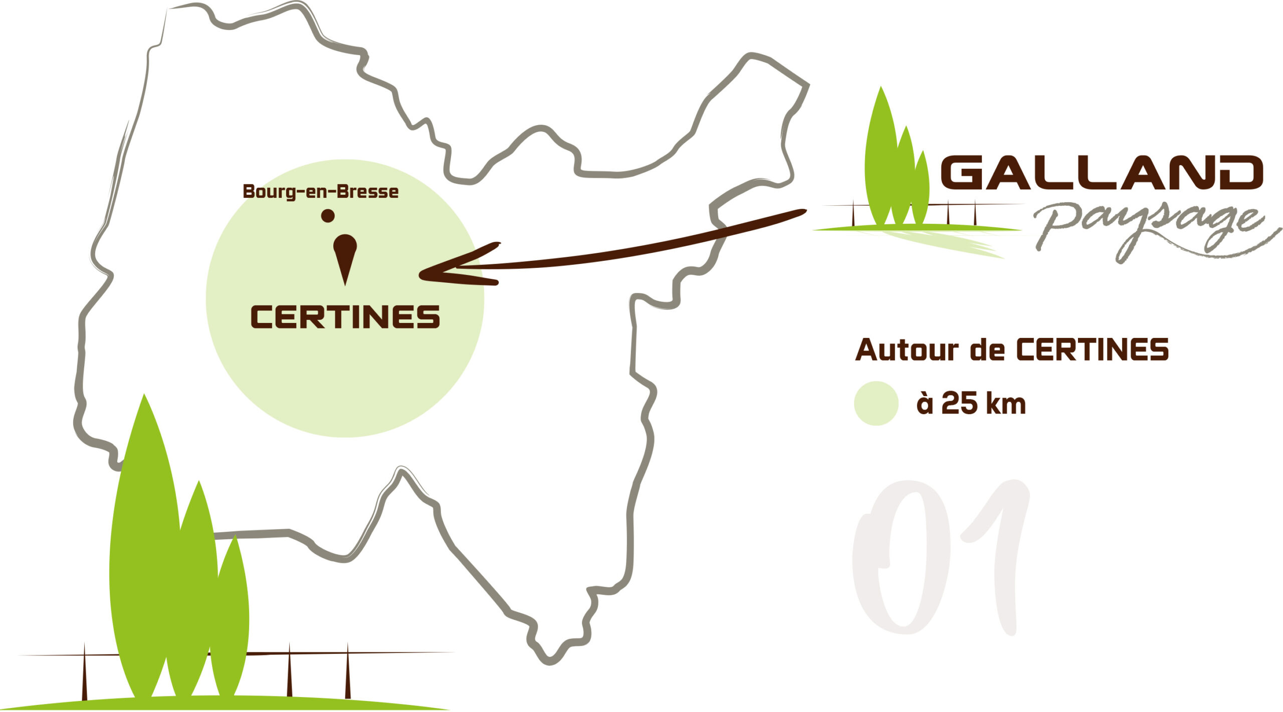 Située à Certines dans le département de l’Ain, l’entreprise Galland Paysage intervient dans un rayon d’environ 25 km autour de Bourg-en-Bresse pour l’entretien et l’aménagement de vos espaces extérieurs.